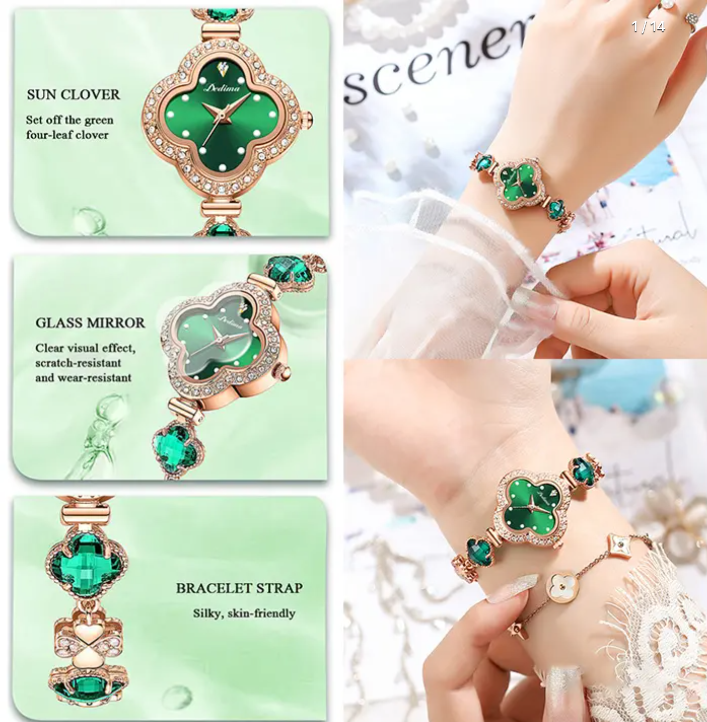 Durable et confortable: Le mouvement à quartz japonais et la batterie fournissent l'heure précise avec un temps de voyage précis, plus de 3 ans de vie, "Lucky girl" gravé sur la couverture arrière, ce qui signifie une fille chanceuse. Tout cela donne à cette montre un aspect luxueux et confortable à porter.