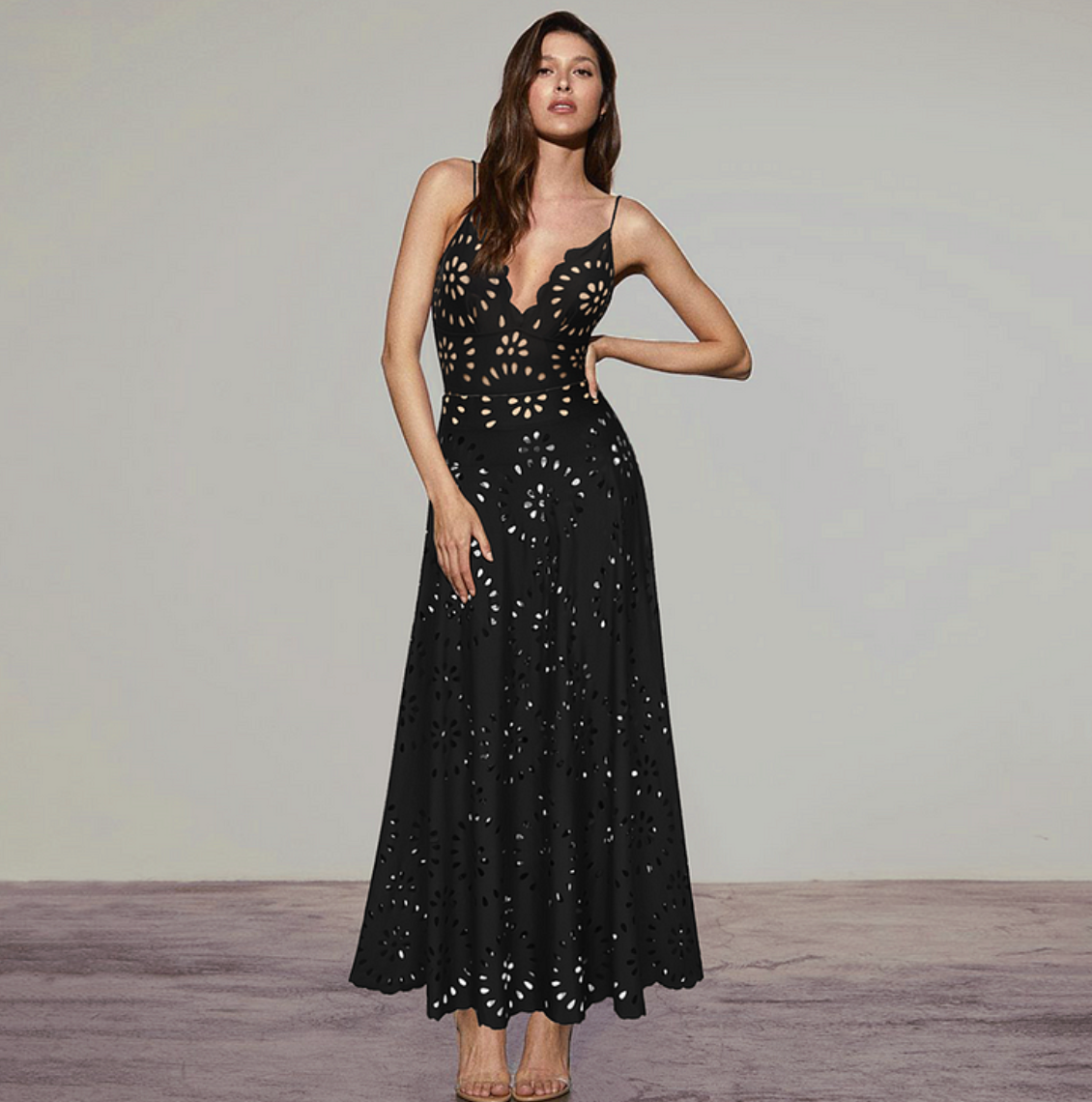 Ce maillot une-pièce noir, orné de découpes délicates façon broderie anglaise, sublime la silhouette avec une touche bohème et glamour💖