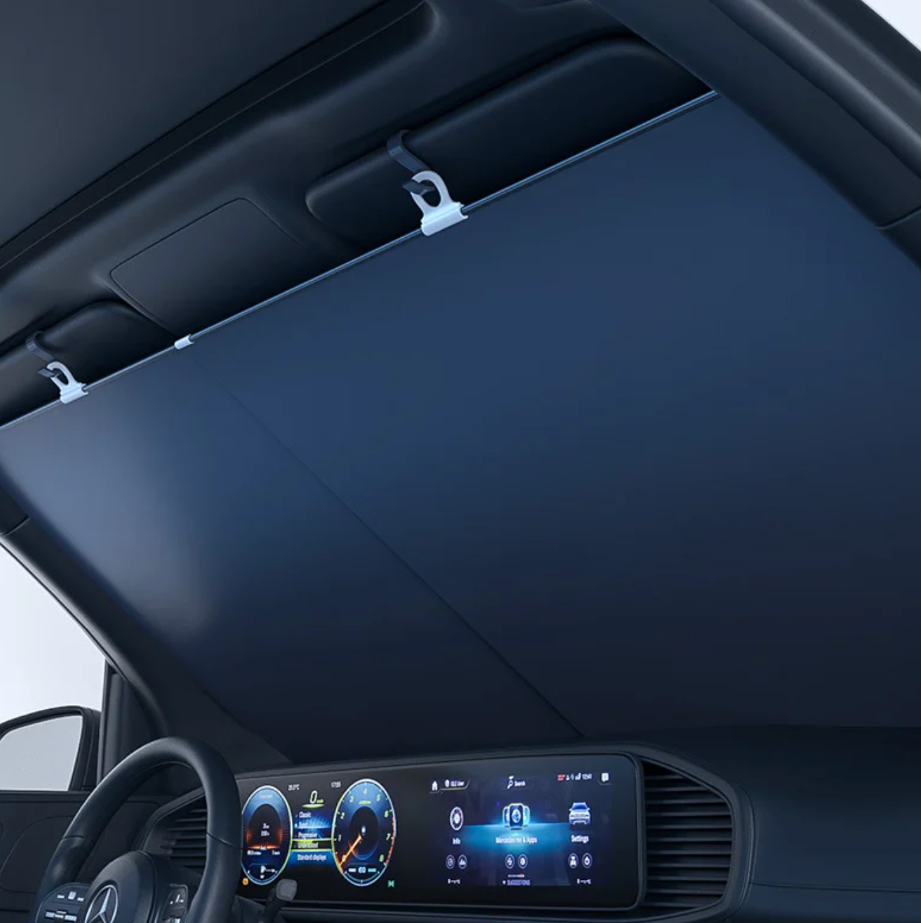 Ce pare-soleil rétractable pour pare-brise de voiture bloque les rayons du soleil lorsque vous ne conduisez pas votre voiture. Il se compose de quatre couches de film PVC épais qui éliminent efficacement 99 % des rayons UV nocifs , protégeant l'intérieur de votre voiture des dommages causés par les UV et le maintenant à une température normale.