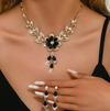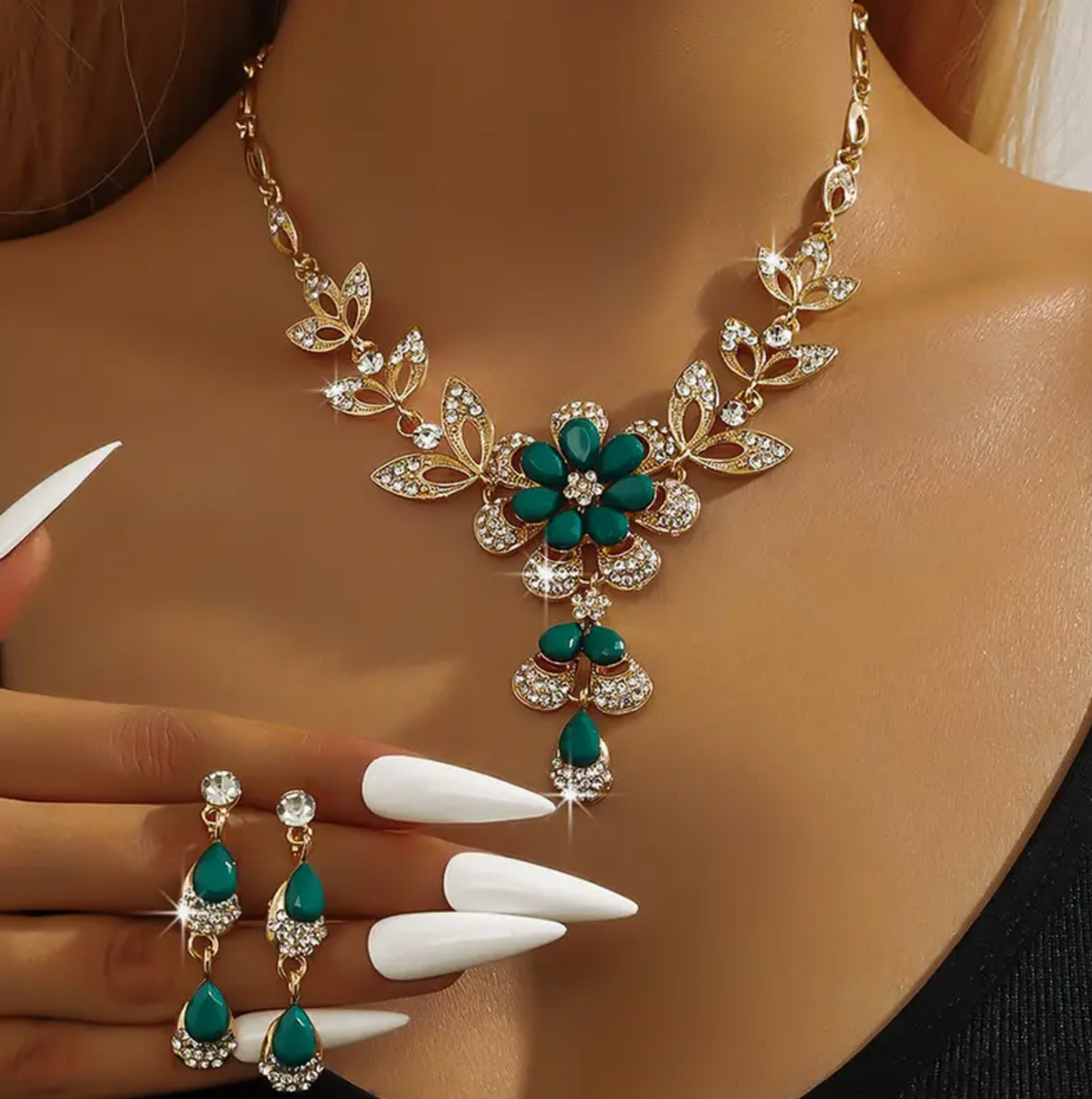 Design raffiné : Un collier agrémenté d’un pendentif délicat, assorti à des boucles d'oreilles élégantes pour un look harmonieux.