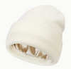 Son intérieur qui est en satin ! Ce bonnet vous tiendra chaud tout l'hiver et gardera vos cheveux en bonne santé. Une chevelure brillante, hydratée, douce, sans frisottis et pas d'effet de "cheveux électriques" quand on le retire : ce sont les promesses qu'on vous fait avec ce petit nouveau bijou.